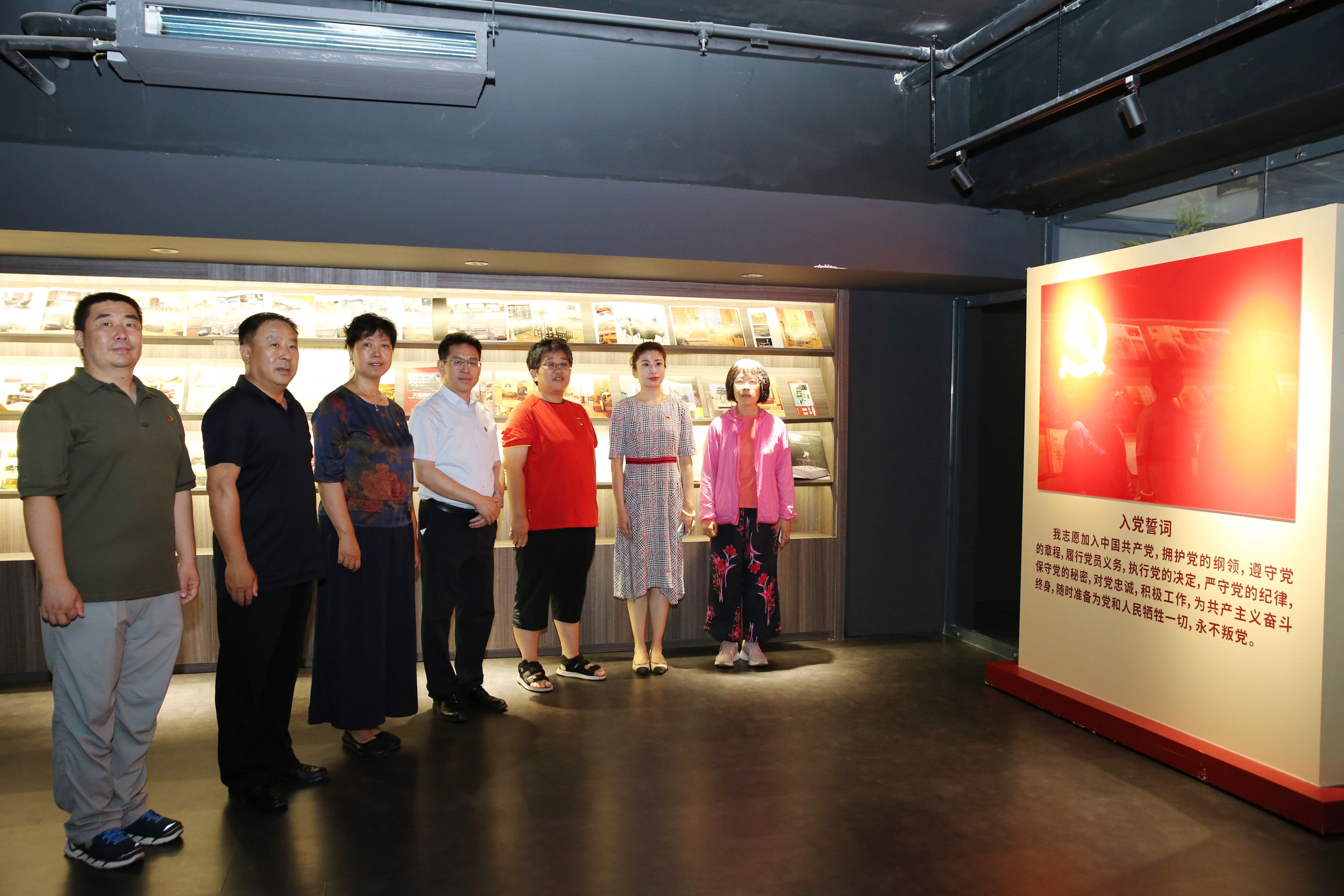 在天壇家具博物館中,情景化氛圍搭建復(fù)原的70、80年代場(chǎng)景引起參觀者情感共鳴,大家紛紛拍照留念。之后,在小黃莊社區(qū)黨委書記、居委會(huì)主任趙躍桀的帶領(lǐng)下,大家面向鮮紅黨旗,再次重溫對(duì)黨莊嚴(yán)而神圣的誓言,堅(jiān)定對(duì)黨的初心和使命。