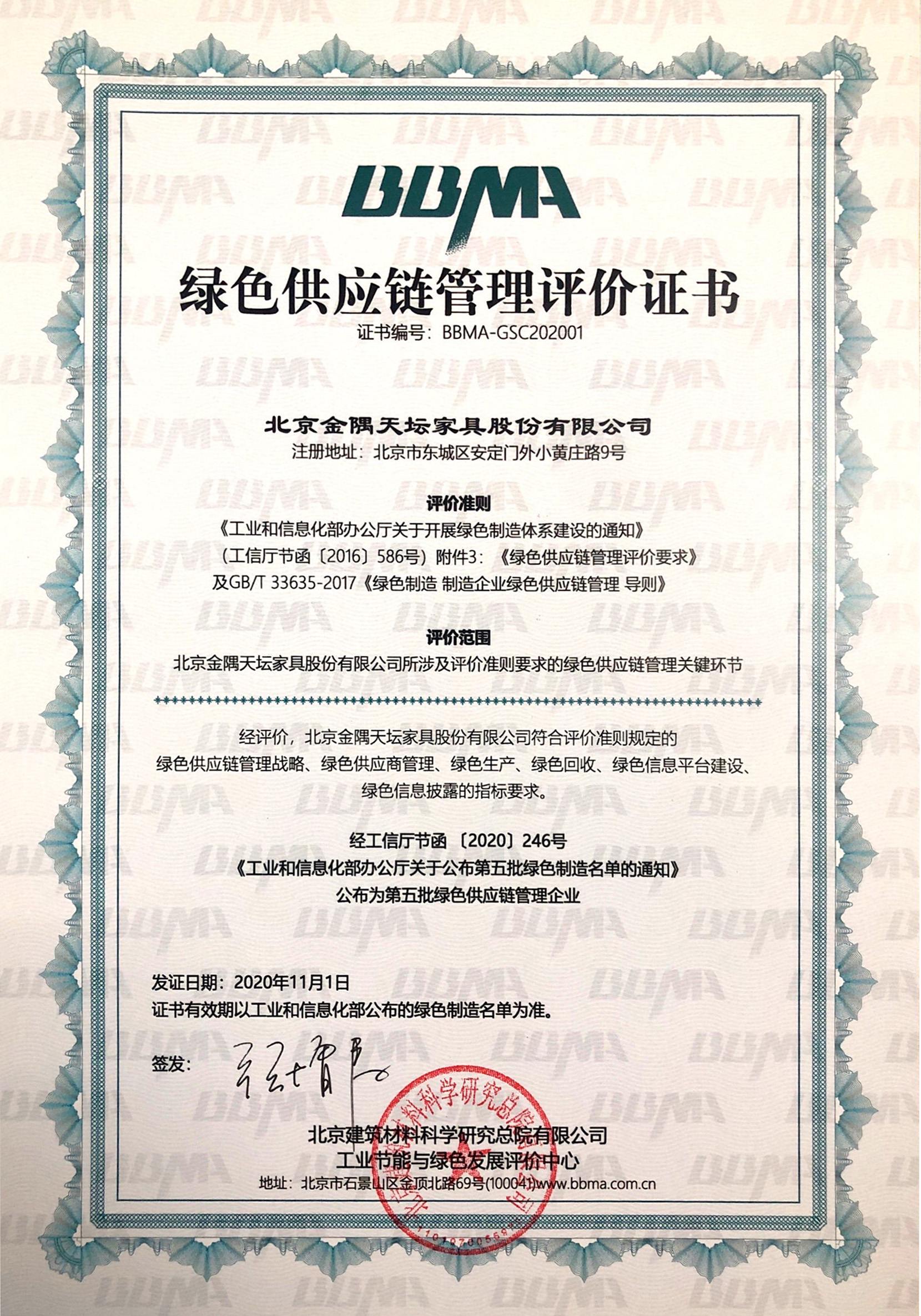綠色供應(yīng)鏈管理評(píng)價(jià)證書
