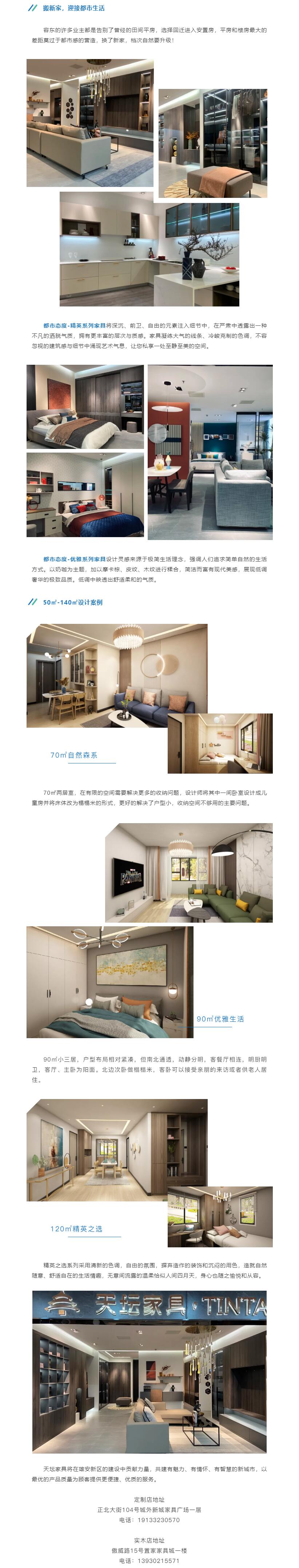 截止目前,天壇家具在雄安城外新城家居廣場開設全屋定制店鋪,為容東片區安置房業主提供免費設計、免費出效果圖,百款套餐,各式風格,為50㎡-140㎡戶型的業主解決家裝家居難題。同時,在容城置家家具城開設雄安實木店,面積達300㎡,經營烏金和西雅圖兩大系列,為雄安新區喜歡實木家具的業主提供便利選擇。